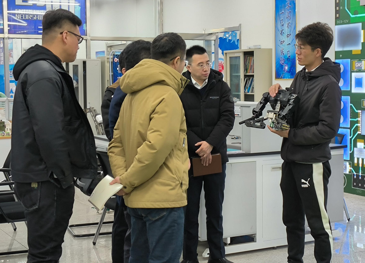 會后,馮強一行實地走訪了固體物理研究所、機器人與無人機省級創客空間、化學與化工學院實驗基地等場所。