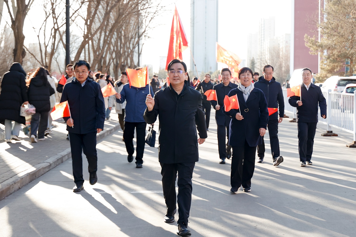 春風有信,花開有期。3月8日,我校各基層黨委、部門單位、分工會約1800名教職員工齊聚御東校區,參加學校第三屆全民健身運動啟動儀式和關愛女教職工健步走活動,共同慶祝第114個“三八”國際勞動婦女節,活動由校工會、校婦聯舉辦。校領導趙水民、姚麗英、寇福明、郭繼林、張旻等出席啟動儀式并參加健步走活動。校黨委書記趙水民宣布全民健身運動啟動,并為健步走活動開始鳴槍。