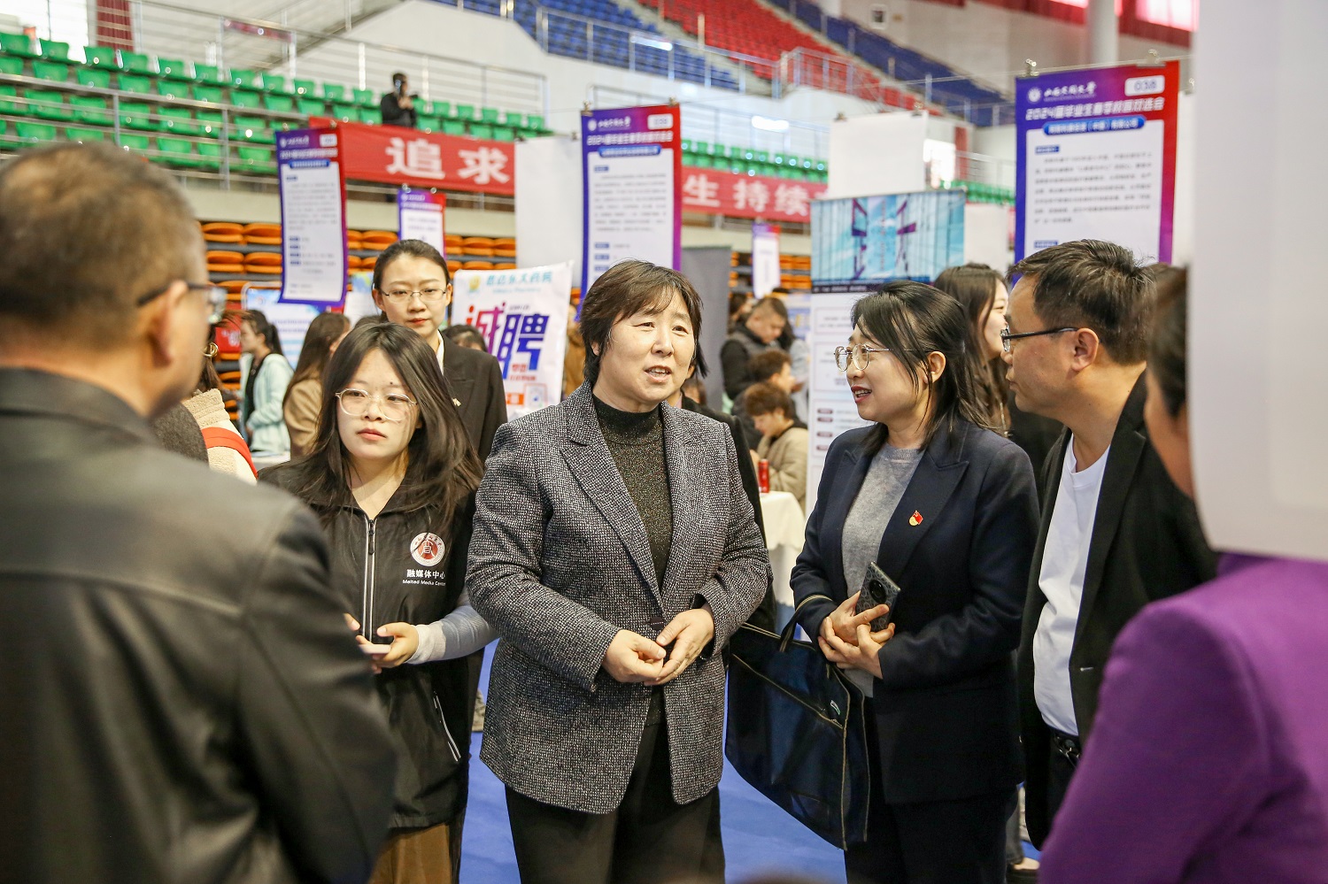 趙水民、姚麗英、寇福明、郭繼林、張旻、石鳳珍等校領導深入招聘會現場指導調研,與用人單位和畢業(yè)生交流互動,傾聽用人單位對學校人才培養(yǎng)工作的意見建議、了解招聘進展情況,向用人單位推薦介紹相關專業(yè)和第二學士學位畢業(yè)生培養(yǎng)情況,向學院班子詢問2024屆畢業(yè)生就業(yè)工作開展情況,要求壓緊壓實責任,多措并舉,將“穩(wěn)就業(yè)、保就業(yè)”任務落實落細。