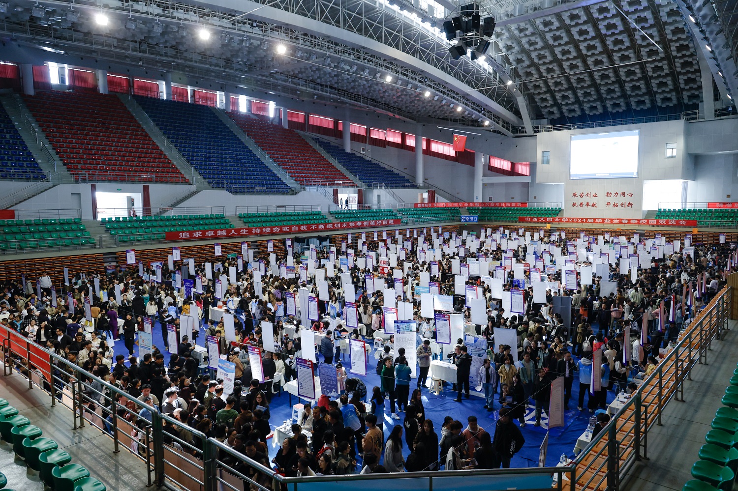 為全面貫徹落實黨中央、國務院“穩(wěn)就業(yè)、保就業(yè)”決策部署,搶抓春季開學后促就業(yè)工作關鍵期,全力促進我校畢業(yè)生高質量充分就業(yè),3月31日上午,我校在御東校區(qū)天翔體育館舉辦山西大同大學2024屆畢業(yè)生春季校園雙選會。本次雙選會由學生工作部承辦,大同市委人才辦、大同市人力資源和社會保障局、大同市就業(yè)和人才服務中心協辦。本次雙選會共提供就業(yè)崗位798個,吸引7000余名學生參加,截至當日下午,1900余名畢業(yè)生初步達成就業(yè)意向。