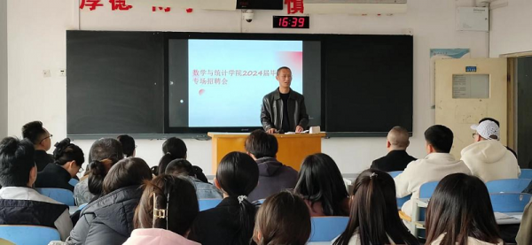 為促進學院畢業(yè)生高質量就業(yè)工作,為畢業(yè)生搭建優(yōu)質就業(yè)平臺,3月26日下午,數(shù)學與統(tǒng)計學院邀請中國平安財產(chǎn)保險股份有限公司大同中心支公司和中信證券股份有限公司大同迎賓街證券營業(yè)部兩家企業(yè)于行知樓309教室組織2024屆畢業(yè)生就業(yè)招聘會。招聘單位領導員工、畢業(yè)班師生等共計50余人參加招聘會。