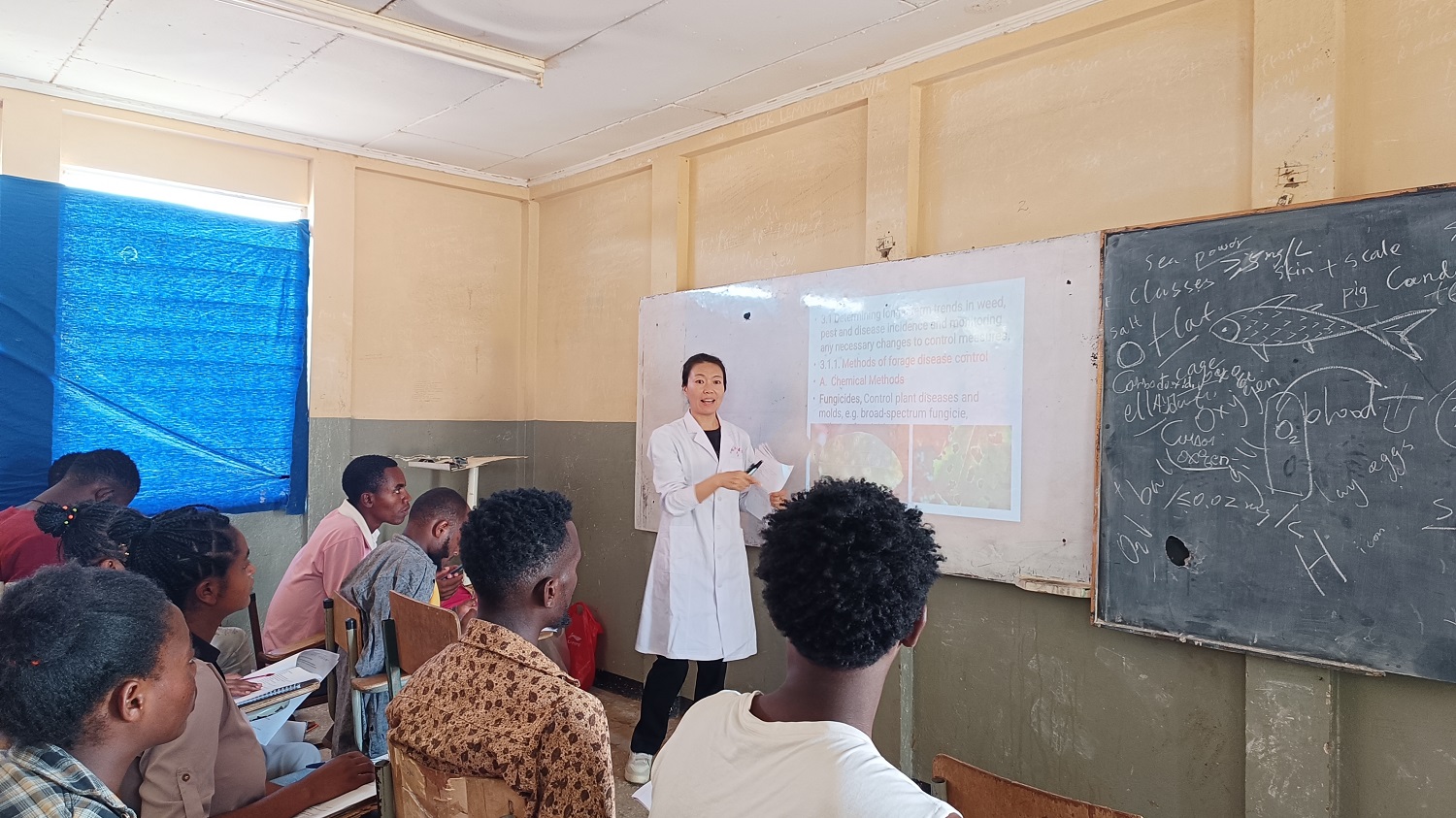 栗瑞蘭積極參與中國援建埃塞Alage學院賦能計劃項目。Alage學院遠離城鎮,面積很大,位于自然保護區內,出行各個系部需要坐車到達。學院內條件艱苦、物資匱乏,生活物資和實驗示范材料采購不便。但栗瑞蘭克服困難,以最飽滿的熱情和責任感完成每天的工作任務。