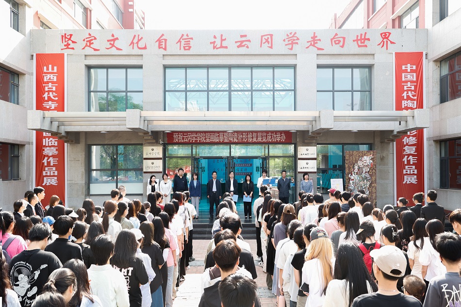 趙水民宣布,山西大同大學(xué)第十七屆校園文化藝術(shù)節(jié)、第三屆云岡文化月“山西古代寺觀壁畫臨摹作品展”暨“中國古代陶瓷補形修復(fù)作品展”正式開幕。