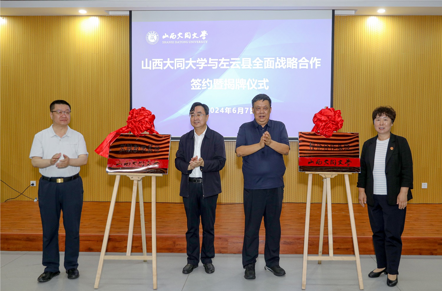 6月7日,我校與左云縣人民政府戰略合作協議簽署儀式在文德樓會議室舉行。雙方共同為“校企合作基地”“實踐教學基地”揭牌,將共建大學生實習實訓、就業創業、技能服務、人才培養、愛國主義教育等平臺,持續加大合作力度,促進深度融合。校黨委書記趙水民,校黨委副書記、校長姚麗英,校黨委常委、副校長史水鴻,左云縣委書記羅士彬,左云縣委副書記、縣長于海斌出席儀式。姚麗英主持儀式。