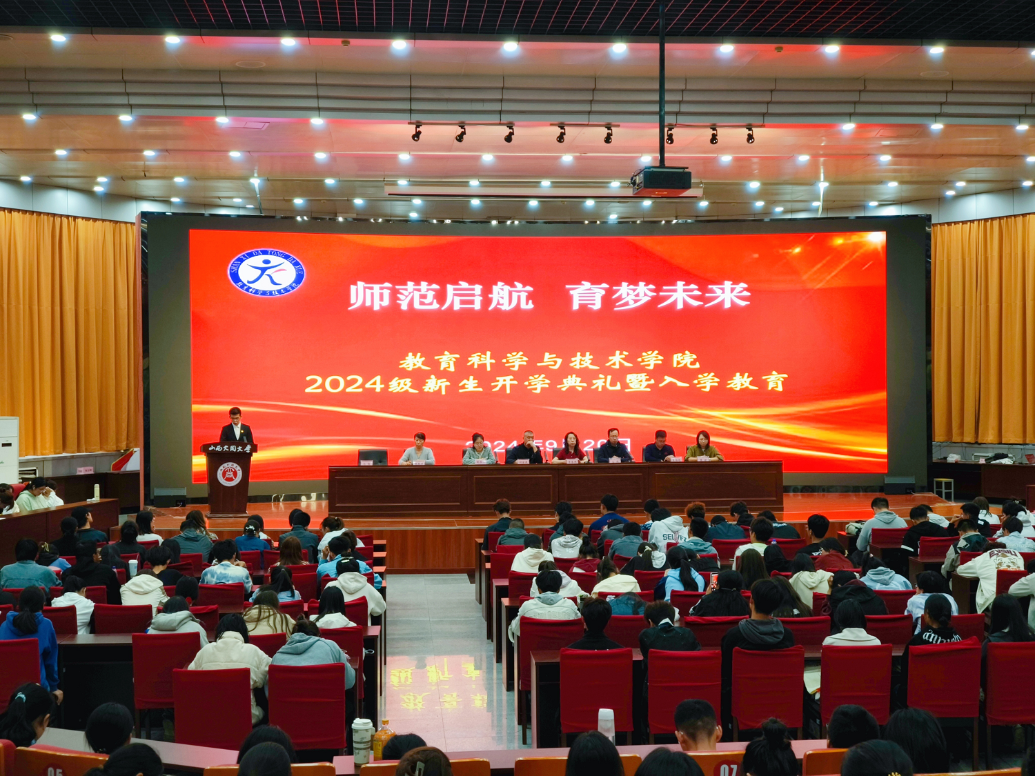 為增進師生之間的溝通與交流,幫助新生盡快適應大學生活,提升學科專業認知,9月20日,教育科學與技術學院在慎思樓報告廳召開2024級新生開學典禮暨入學教育大會。學院領導班子、系主任、新生班級班主任和400余名2024級本科新生參加。學院黨委副書記侯雁伶主持。