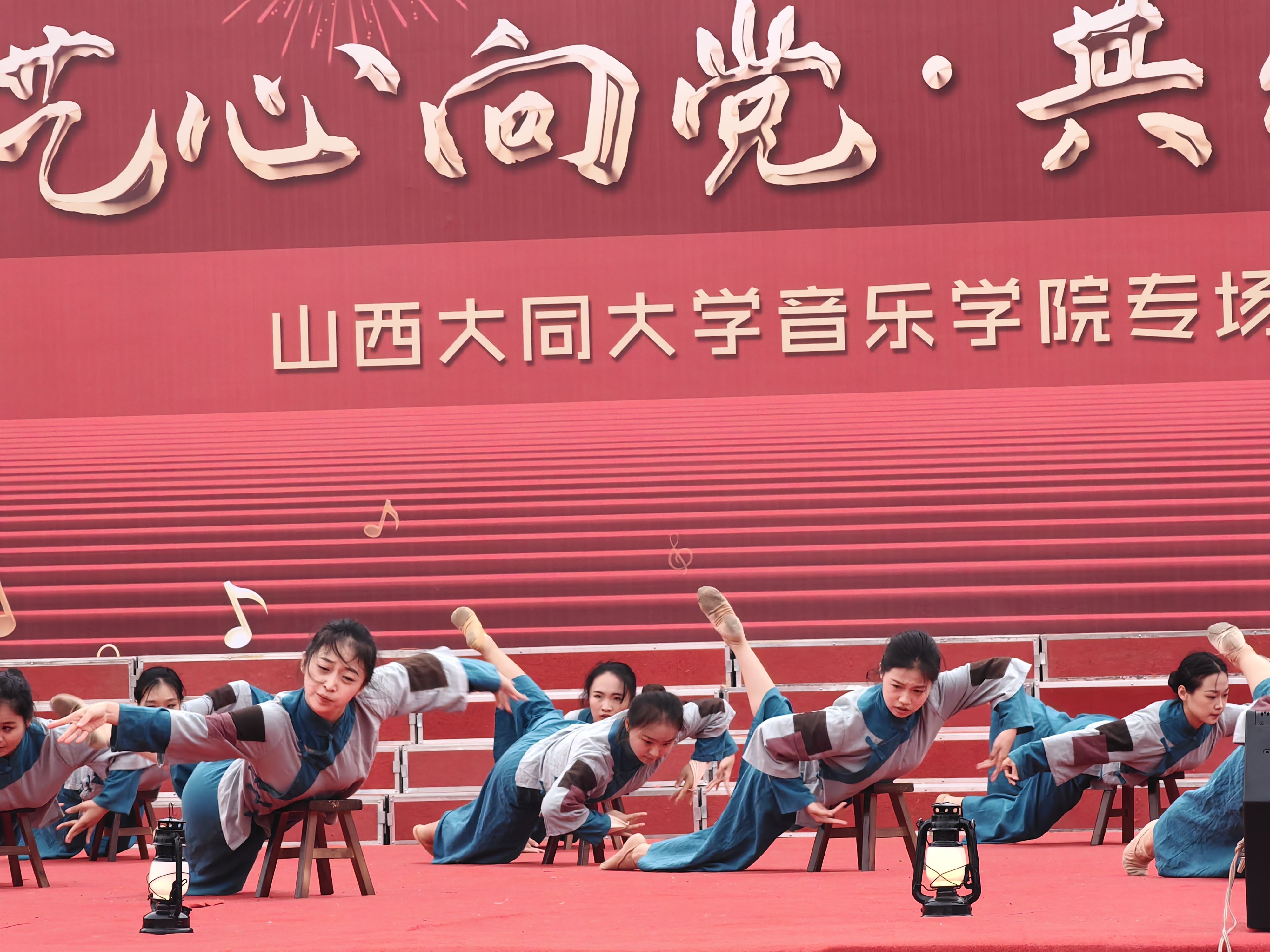 男聲小合唱《手挽手》、石窟文化樂舞《遠古的呼喚》、男聲獨唱《天地龍鱗》、竹笛合奏《揚鞭催馬運糧忙》、女聲小合唱《敕勒歌》、晉劇選段《水調歌頭》、琵琶重奏《送我一支玫瑰花》、女聲小合唱《再唱山歌給黨聽》、男聲獨唱《向往》、古箏重奏《戰臺風》、當代舞《蘇區母親》、女聲獨唱《我愛你中國》……音樂學院師生傾情演繹,節目精彩紛呈,贏得了陣陣掌聲與喝彩。