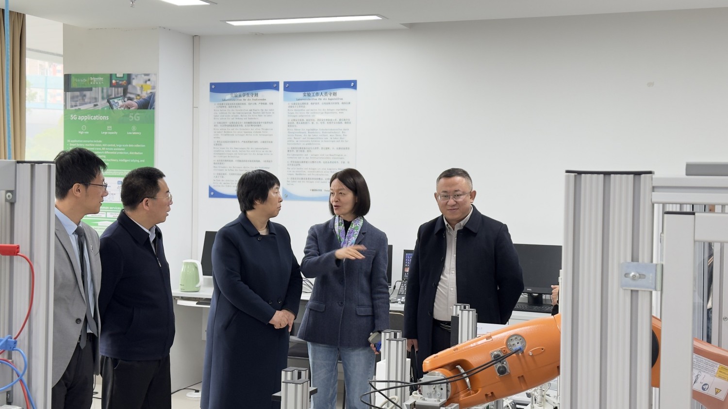 在同濟大學(xué),副校長婁永琪與我校領(lǐng)導(dǎo)進(jìn)行了交流。姚麗英一行與中德工程學(xué)院黨委書記馮一平、院長王繼平進(jìn)行了座談。副院長謝楠介紹了同濟大學(xué)中德合作辦學(xué)的相關(guān)情況,雙方圍繞中外合作辦學(xué)、師生交流訪問、產(chǎn)教融合、學(xué)科交叉融合等方面進(jìn)行了細(xì)致深入的交流,并對兩校進(jìn)一步加強合作交換了意見。隨后,姚麗英一行參觀了中德工程學(xué)院的工業(yè)4.0實驗室、微電網(wǎng)實驗室及車聯(lián)網(wǎng)實驗室。