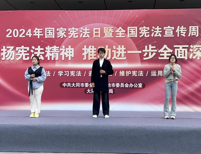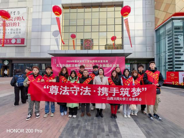 ??? 為深入貫徹落實習近平法治思想,大力弘揚憲法精神,12月4日,學校工會與法學院攜手中共大同市委全面依法治市委員會,在萬達廣場舉辦“12.4”國家憲法日及憲法宣傳周活動,以“大力弘揚憲法精神,推動全面深化改革”為主題,共筑法治夢想。此次活動吸引了全市45余家單位積極參與。