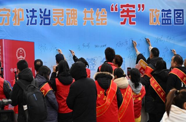 活動現場,學生們精神抖擻,熱情高漲。他們發放憲法宣傳資料,用通俗易懂的語言和生動案例,向市民普及憲法知識,讓憲法精神深入人心。同時,特別設置的“守護法治靈魂,共繪‘憲’政藍圖”主題簽名墻更是激發了市民參與法治建設的熱情,紛紛簽名表達支持。(來源:校工會、法學院 責編:趙鑫)